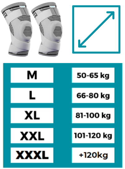 M - 50-65 kgL - 65-80 kgXL - 81-100 kgXXL - 101-120 kgXXXL - 120+ kg