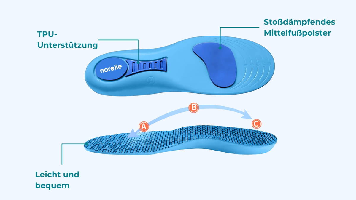 ComfySole Einlegesohlen sind mit einer speziellen Dämpfung ausgestattet, die sich der natürlichen Struktur des Fußes anpasst. Diese gezielte Unterstützung hilft, Stöße zu absorbieren und den Druck auf empfindliche Bereiche zu reduzieren, die von Neuropathie und Plantarfasziitis betroffen sind.