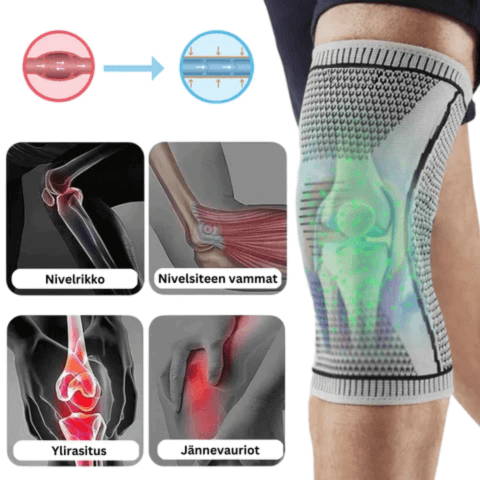 Terapeuttinen kompressio luo hyvältä tuntuvan, rentouttavan painen polven alueelle, vähentäen tulehdusta ja lievittäen kipua.