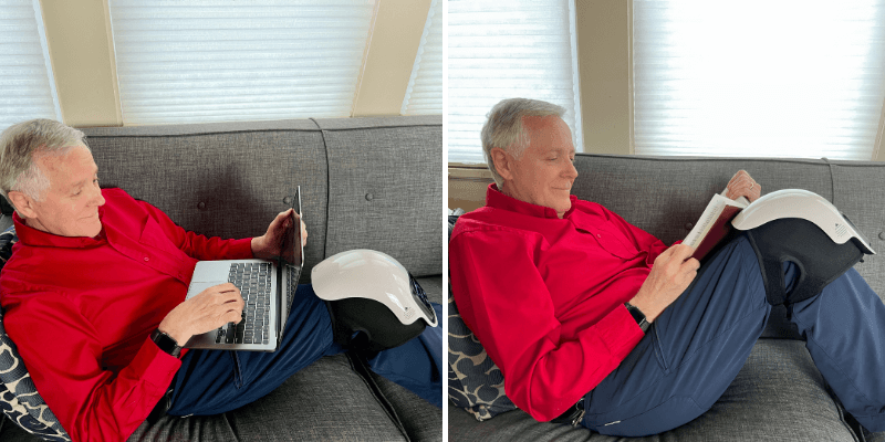 Im Gegensatz zu Handgeräten umschließt dieses Massagegerät Ihr Knie zu jeder Zeit vollständig. Es liegt eng an, sodass Sie ein Buch lesen, fernsehen oder sich einfach zurücklehnen und entspannen können, ohne Ihre Hände benutzen zu müssen.