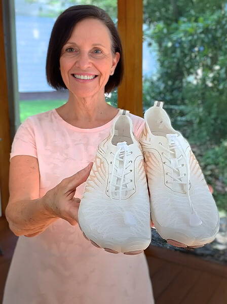 "Diese Schuhe sind Wahnsinn! Ich habe sie jedem empfohlen, den ich kenne! Sie sind die bequemsten Schuhe überhaupt! Aufgrund einer Chemotherapie habe ich Neuropathie an einigen Zehen und an beiden Fußballen, ich konnte seit ein paar Jahren keine geschlossenen Schuhe mehr tragen, bis ich diese gefunden habe!"