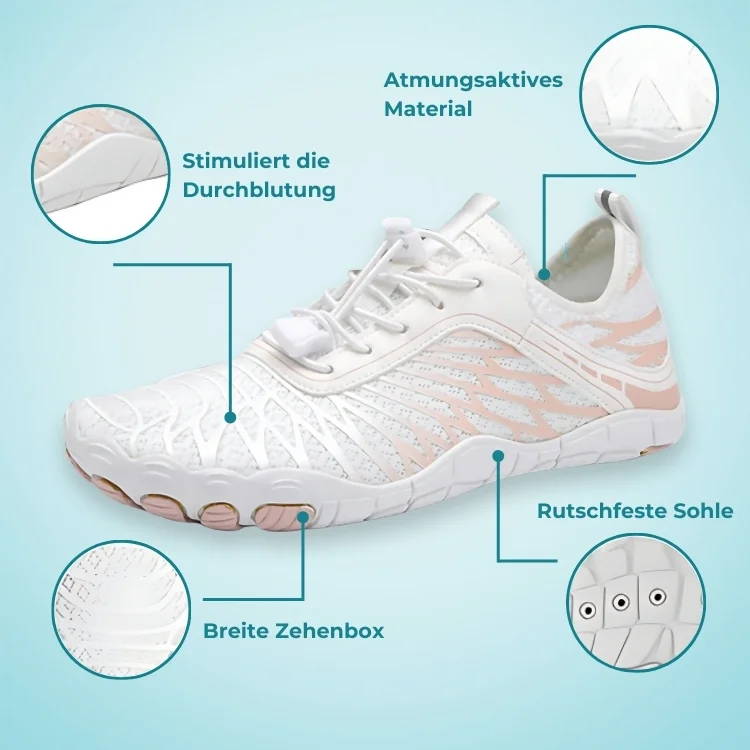 ✓ Ultradünne Sohlen: Diese Sohlen sind so konzipiert, dass sie das Gefühl des Barfußlaufens imitieren und das Bodenfeedback verbessern, was für die Stärkung der Fußmuskulatur und die Linderung von Neuropathiesymptomen entscheidend ist.