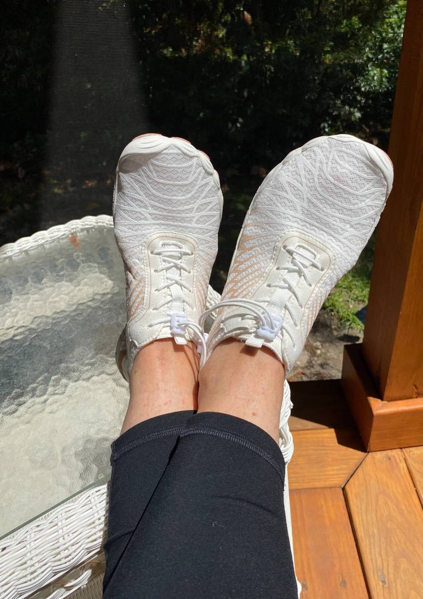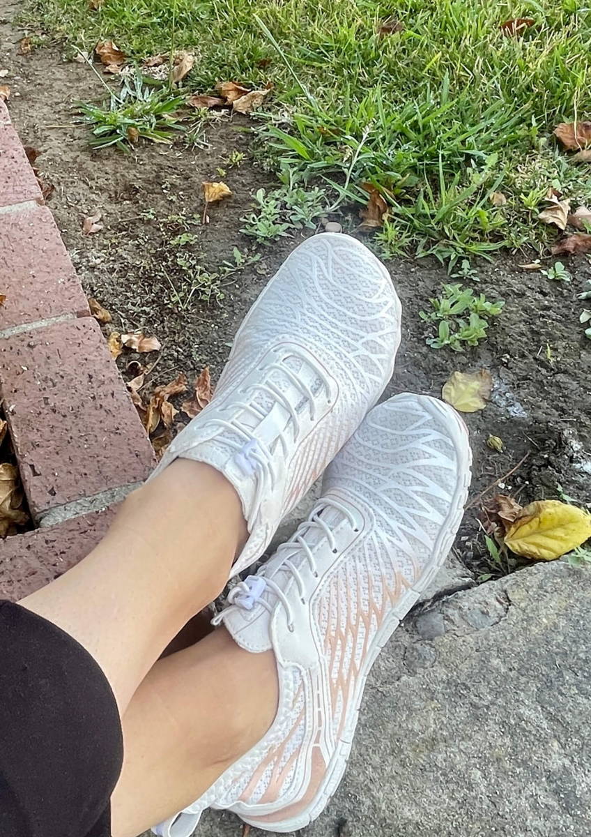 "Ich liebe diese Schuhe! Sie haben einen breiteren Bereich im vorderen Teil des Schuhs, um mehr Platz für die Zehen zu ermöglichen (nicht so schmal wie viele andere Schuhe). So fühlt man sich barfuß! Sehr bequem zum Laufen. Habe den ganzen Tag im Zoo damit verbracht und meine Füße fühlen sich großartig an."