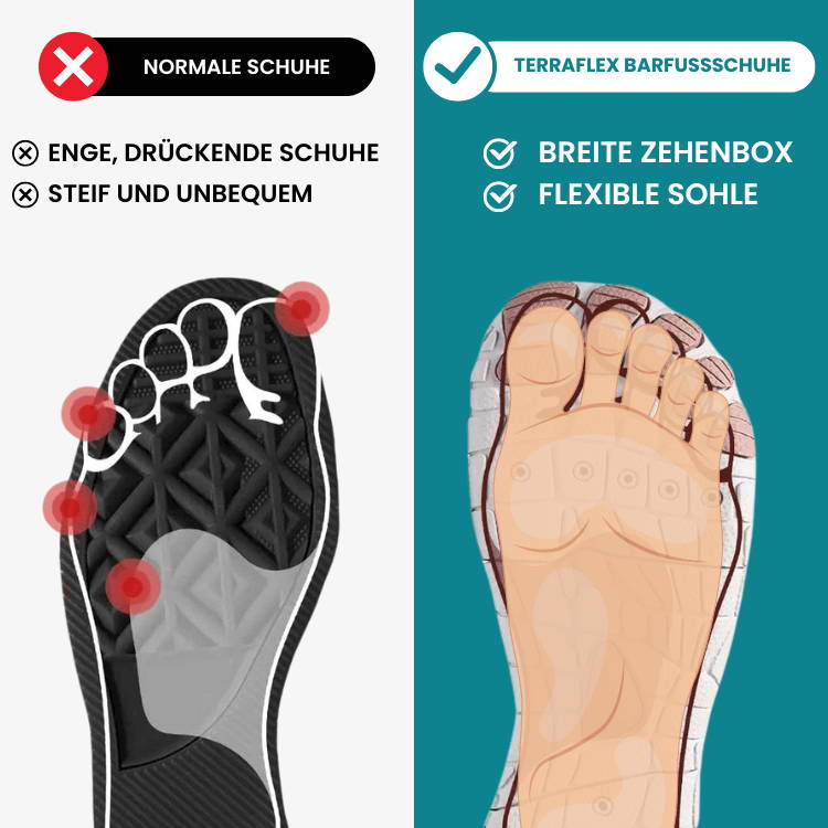 Verschlimmern Schuhe Ihre Fußschmerzen? TerraFlex Barfußschuhe bieten gezielte Linderung bei Plantarfasziitis, Plattfüßen und Neuropathie!